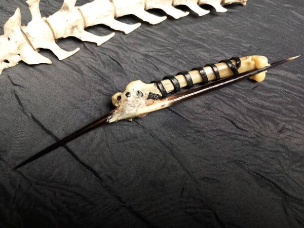 Double-sided witch needle made from rabbit bone and a porcupine quill
