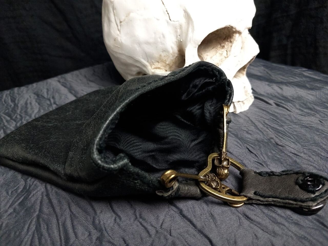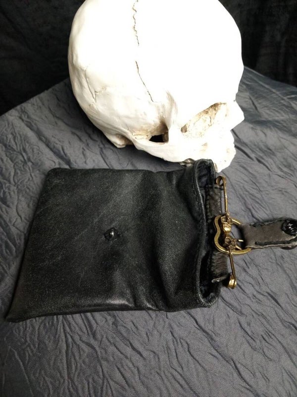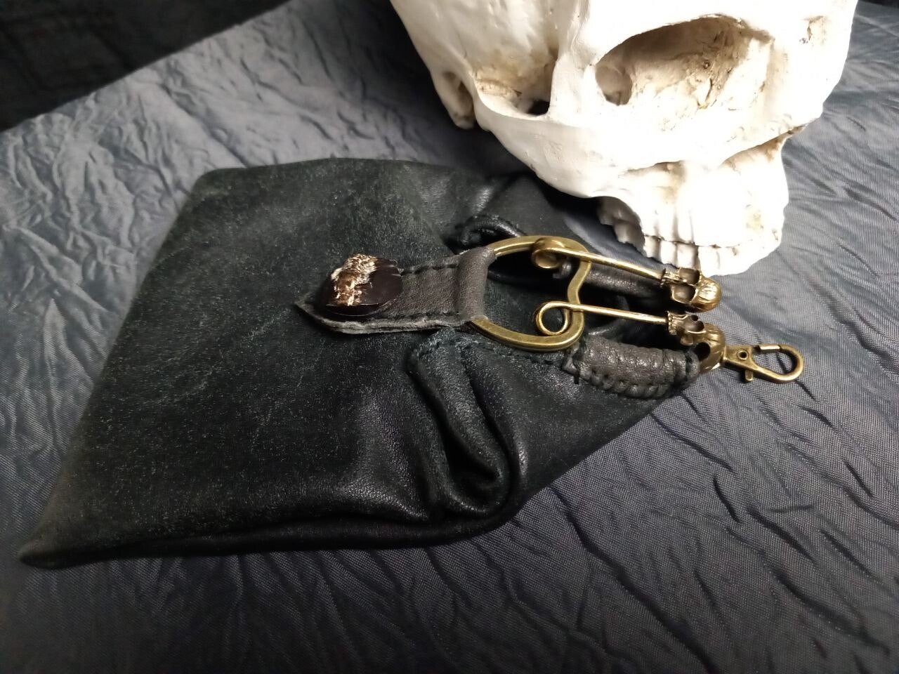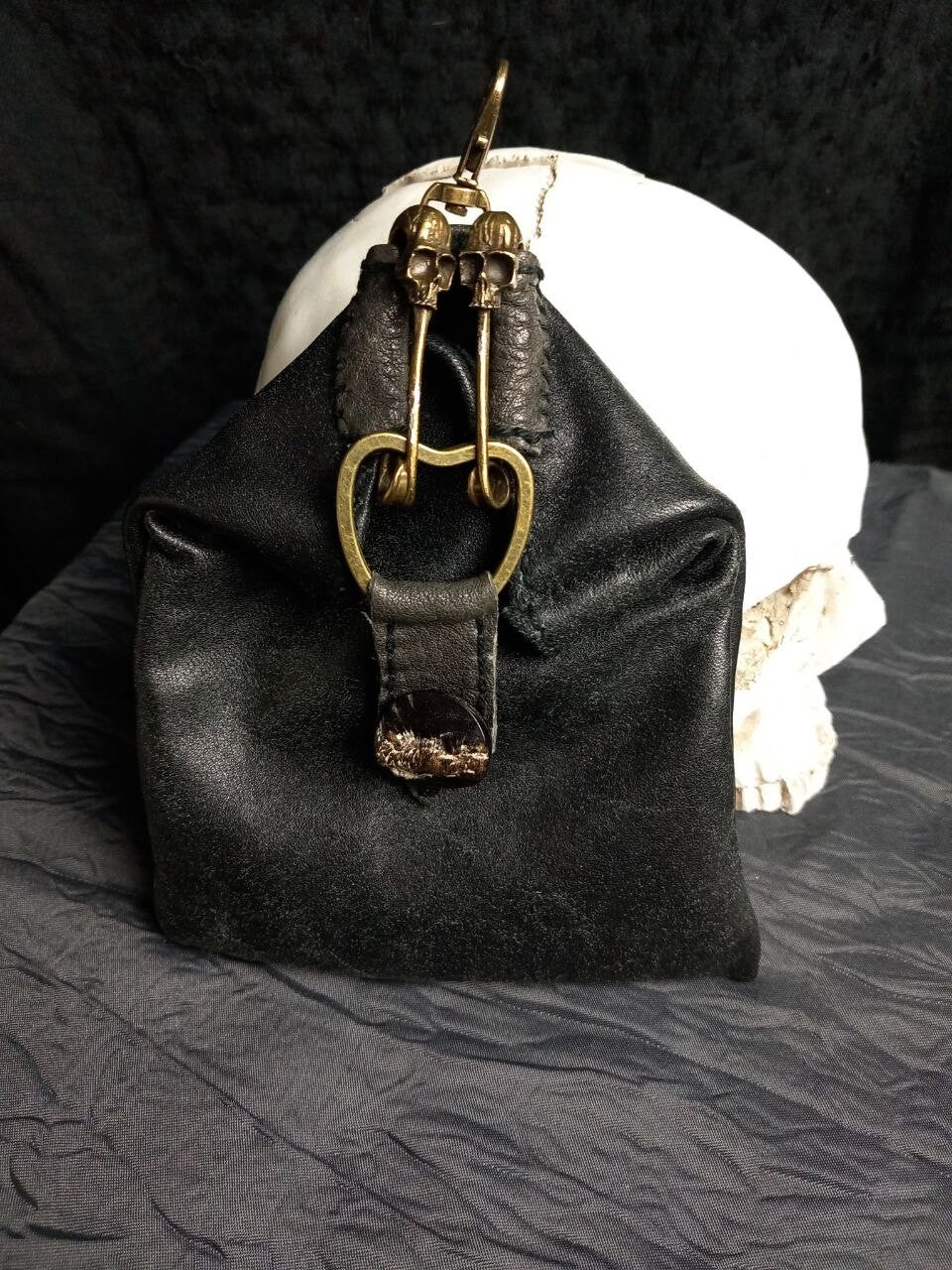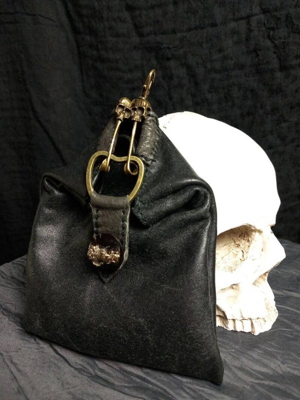 Cute little keychain bag with an extravagant skull closure.