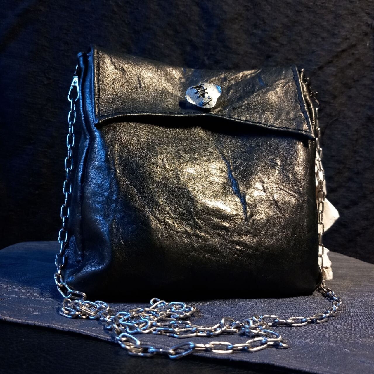 Shoulder bag made from super soft leather with press stud fastening and additional zipped compartment at the back.