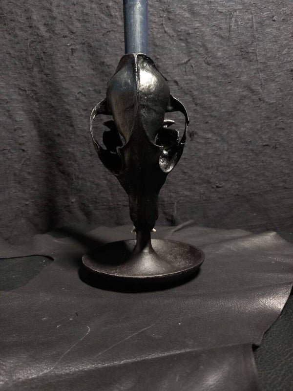 Candlestick with blackened fox skull