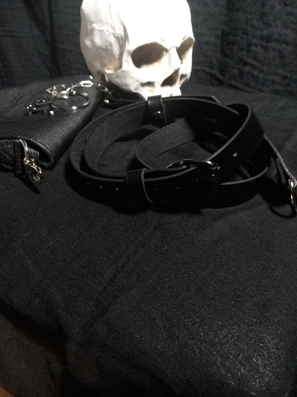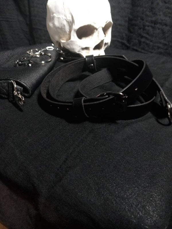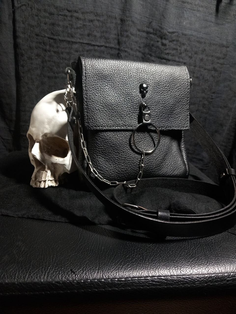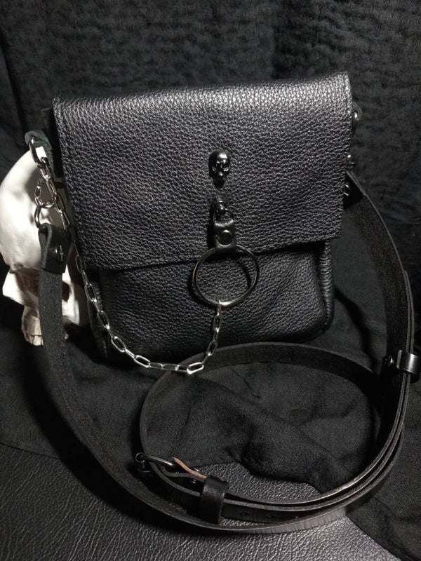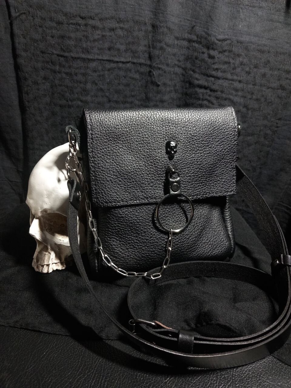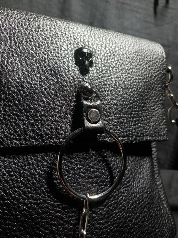 There is a skull decoration on the outside and a decorative ring with a chain.