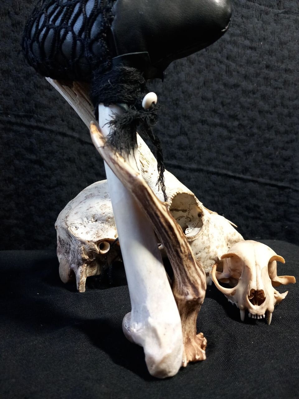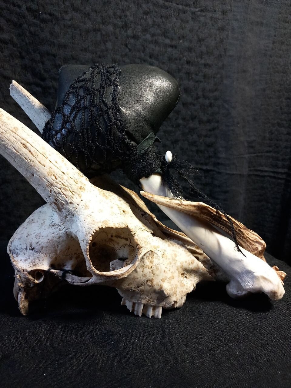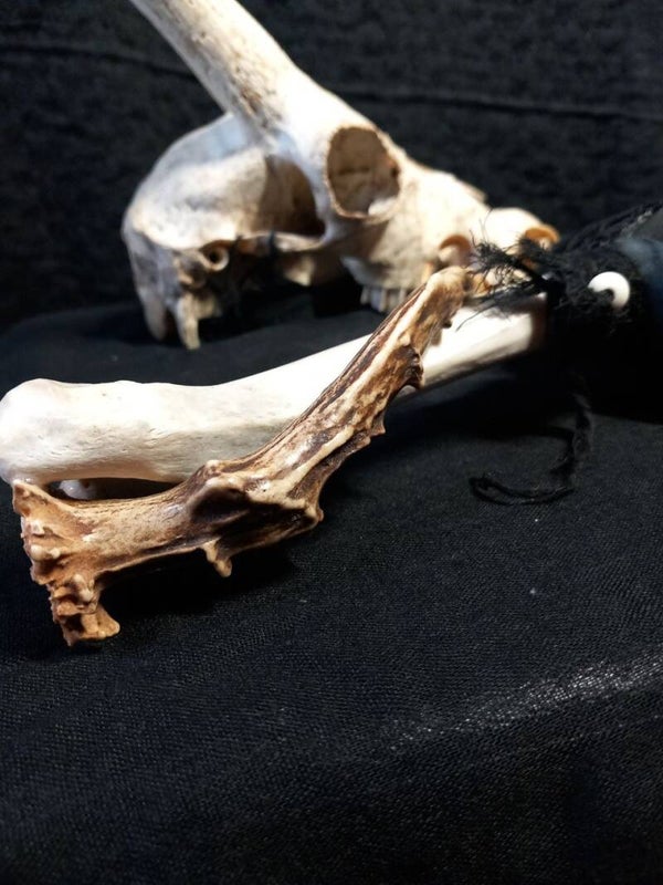 Born from bone, encircled by a deer antler and bound in leather. A rattle for spirit paths and rites, crafted in the old ways.
