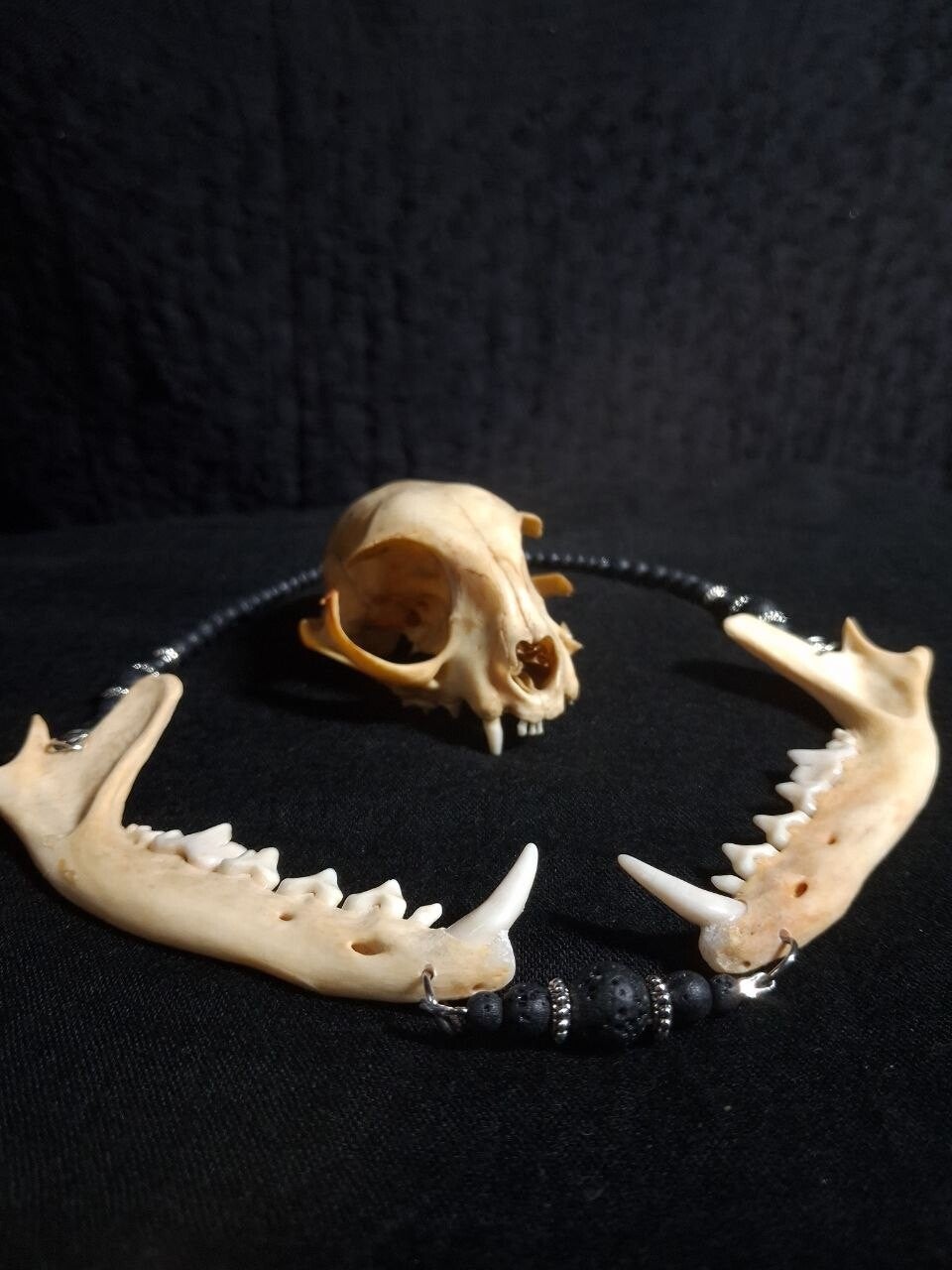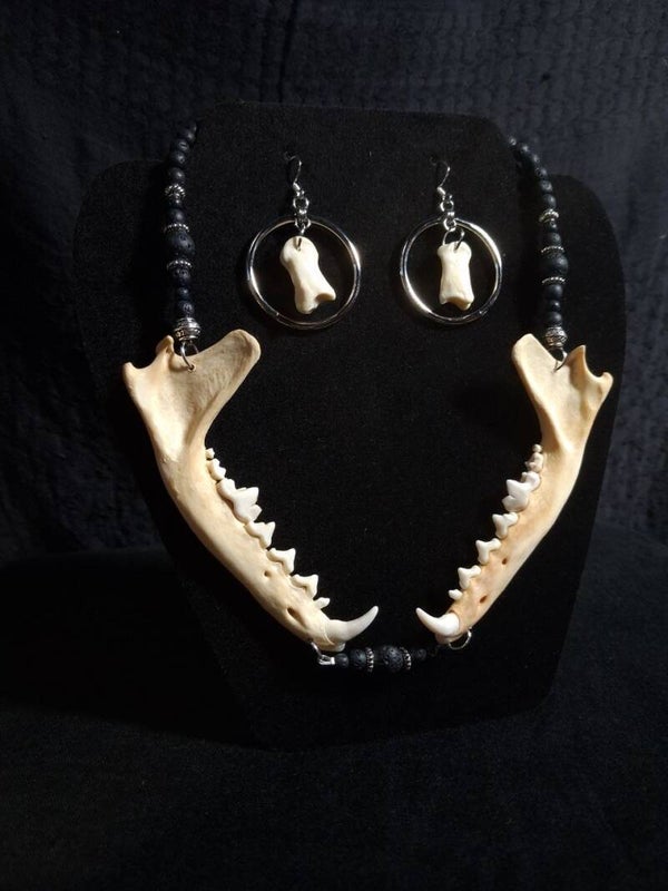 Fox Mandibles Lava Beads Necklace